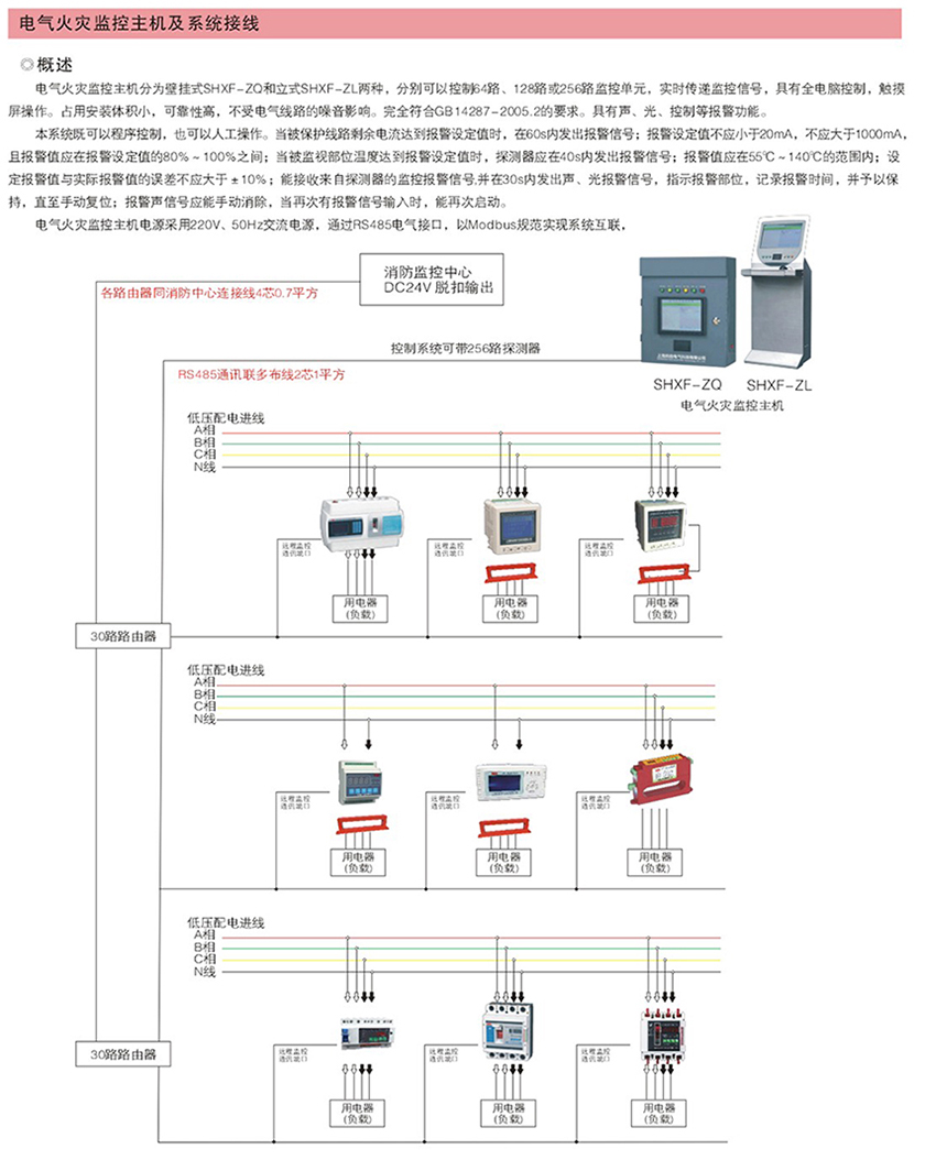 电气火灾监控主机及系统接线