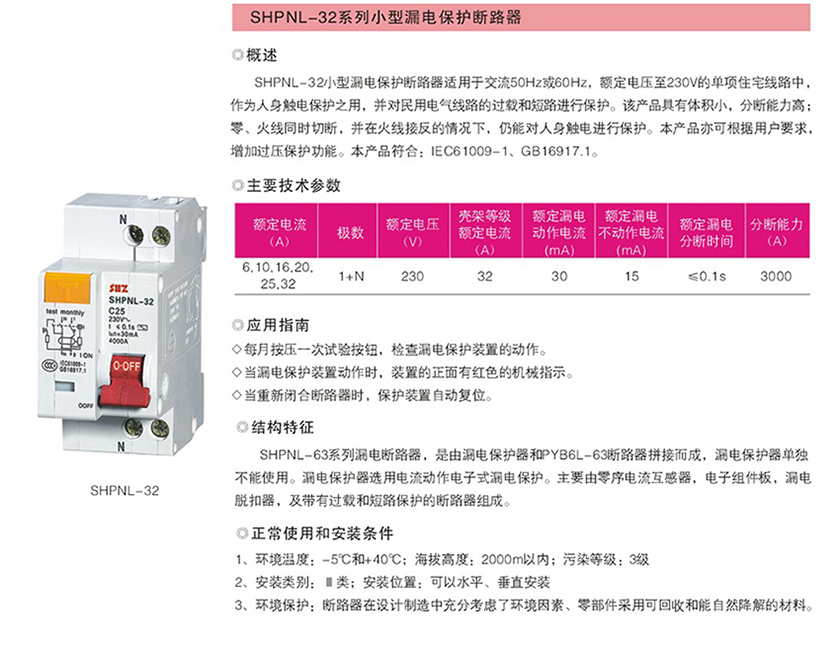 SHPNL-32系列小型漏电保护断路器