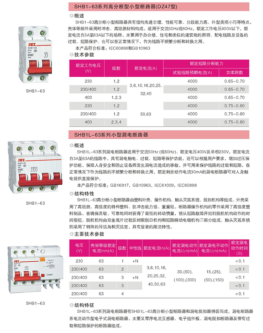 SHB1L-63系列小型漏电断路器