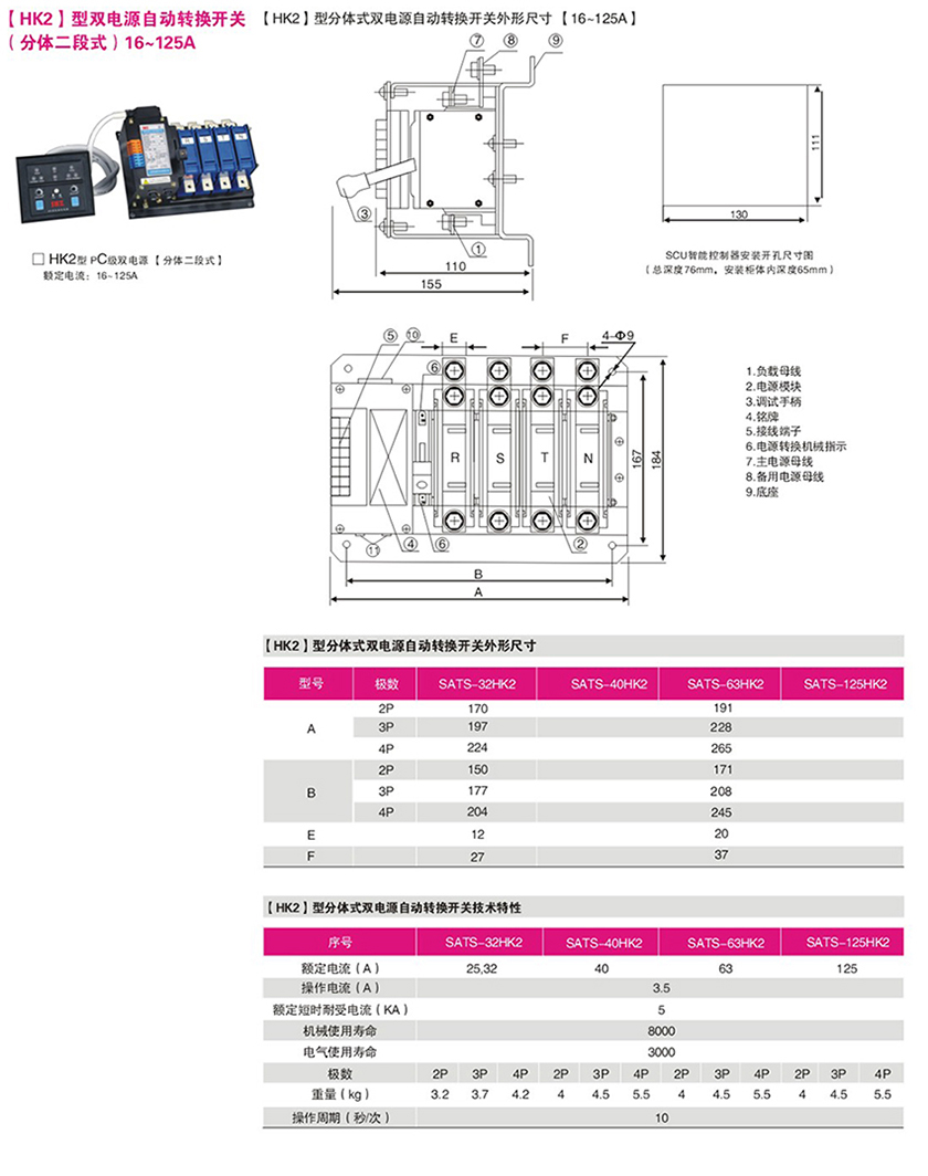 (HK2)型双电源自动转换开关分体二段式16-125A