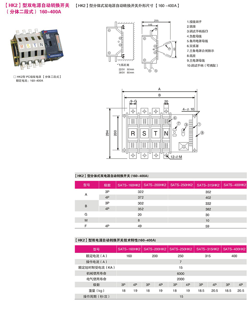 (HK2)型双电源自动转换开关分体二段式16-400A