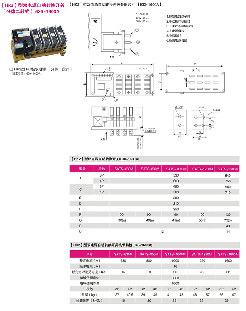 (HK2)型双电源自动转换开关分体二段式630-1600A